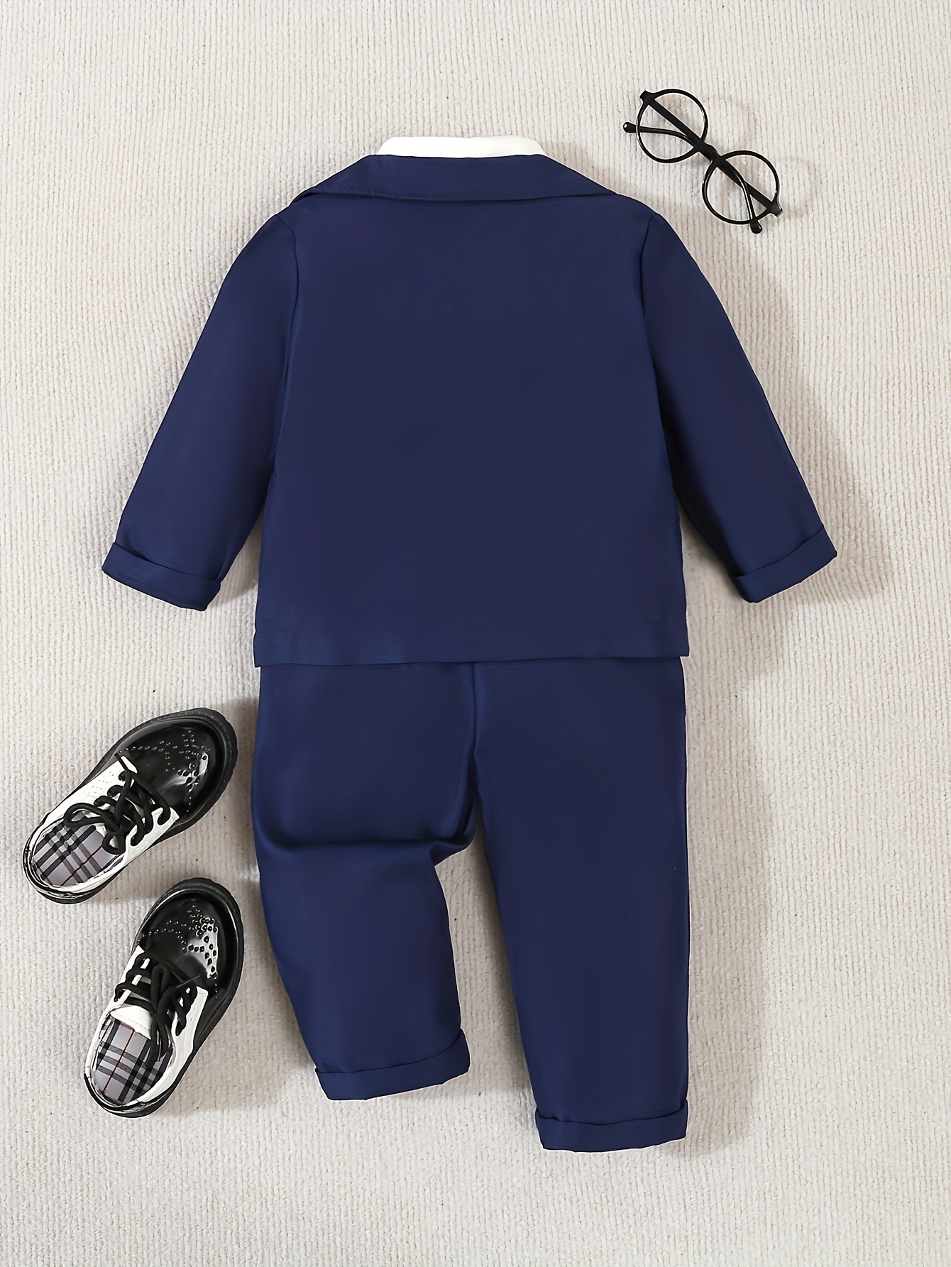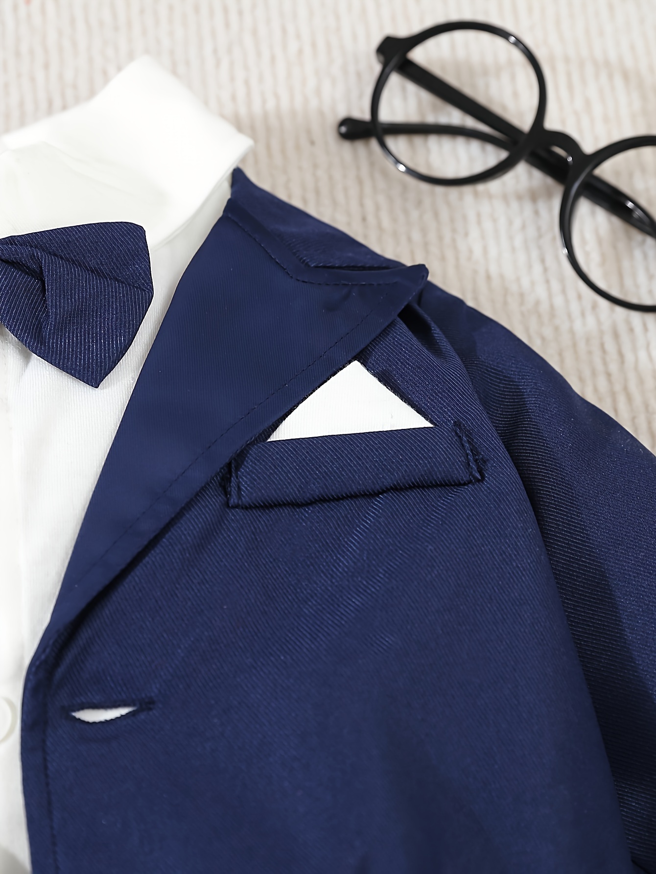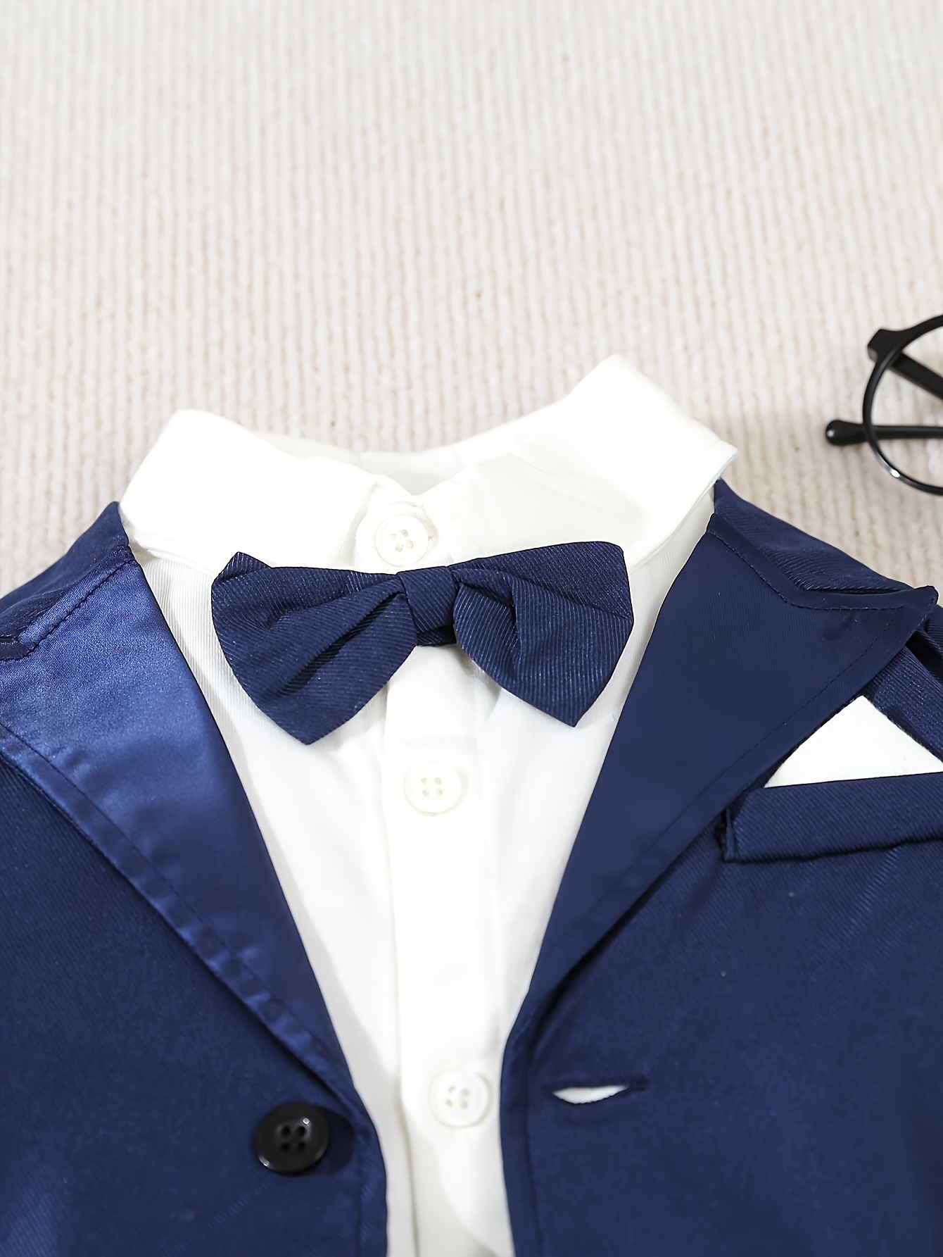 1 Set Boys' 3pcs Gentleman Suit, Includes Long Sleeve Shirt with Bow Tie, Faux P