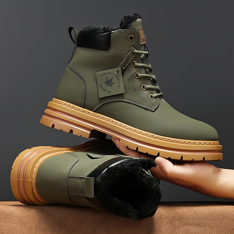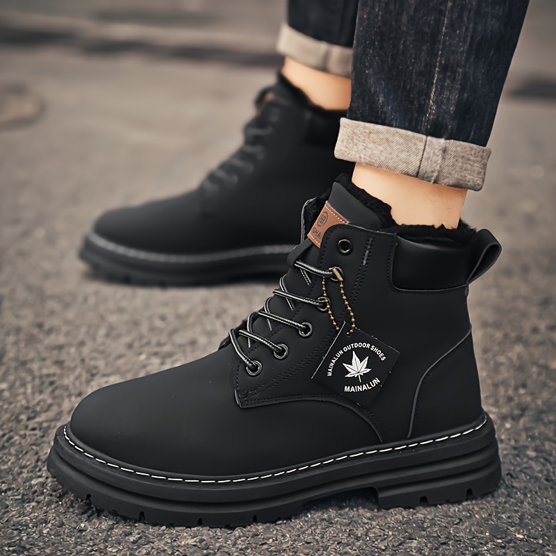 1pair MAINALUN Men'S Fashion High-Top Lace-up Snow Boots, Faux Casual Shoes with