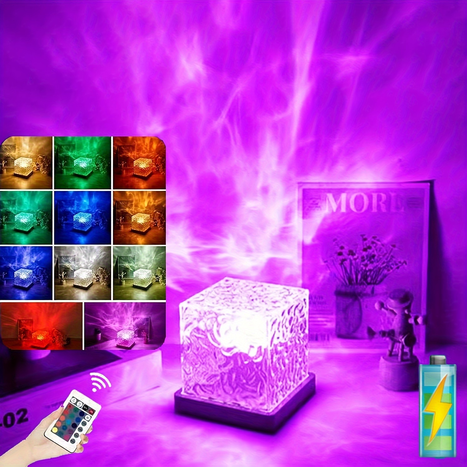 1PC Northern Lights Ocean Wave Projector Light, 16 Colors Gradual Rotating Flame