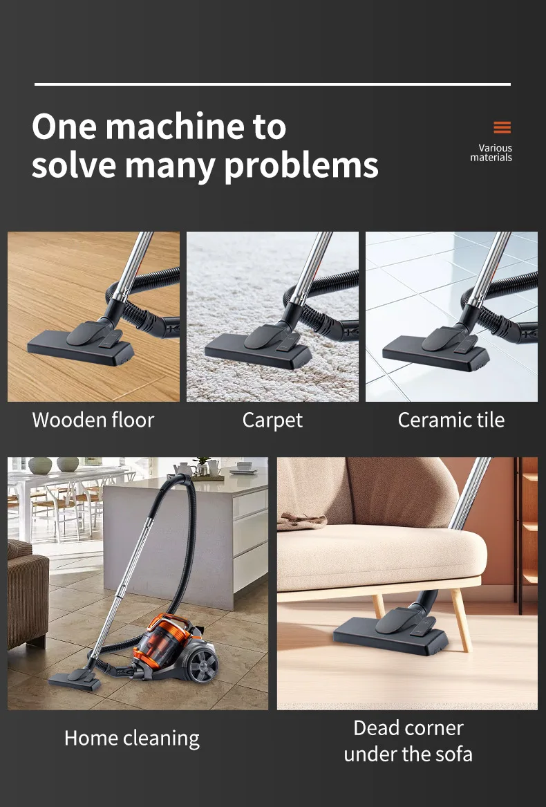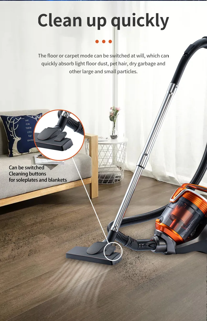 1. 【 Powerful suction 】 The vacuum cleaner adopts a high-efficiency motor for higher efficiency, and adopts multi cyclone technology for deep cleaning. It can easily clean various types of floors.