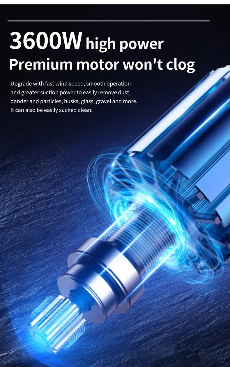 4. Powerful: Equipped with a powerful 3600w energy-saving motor, it can generate 15kpa vacuum power
