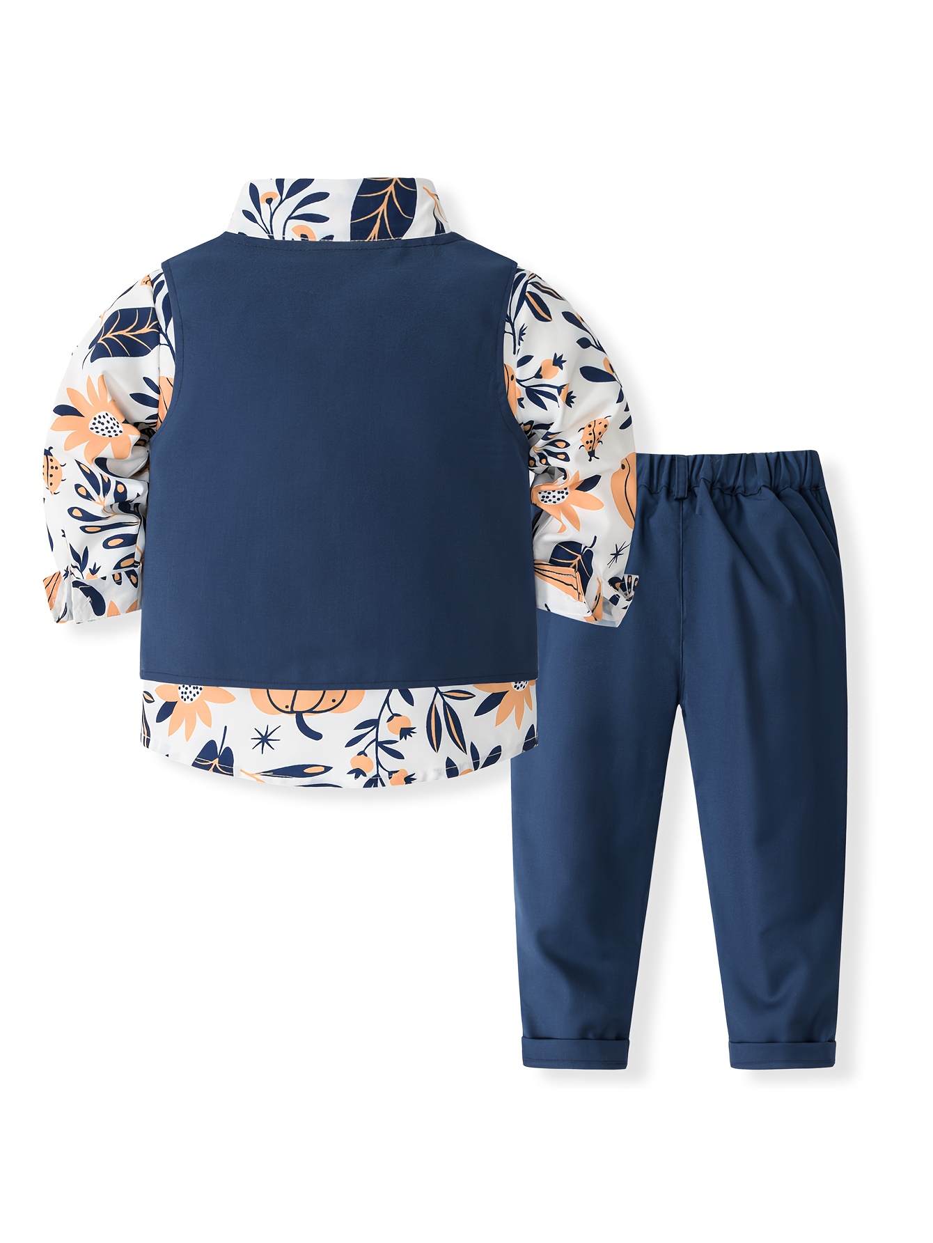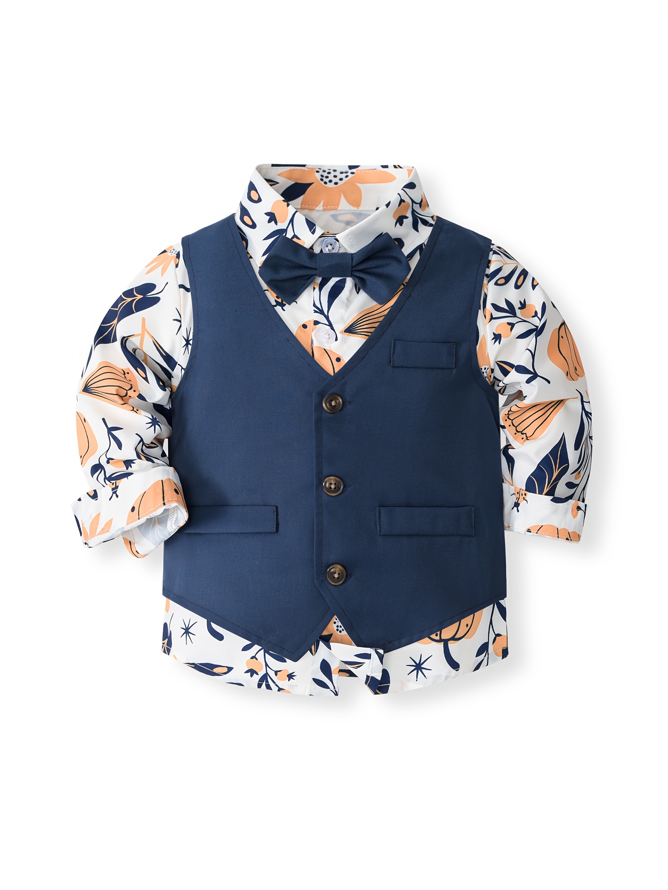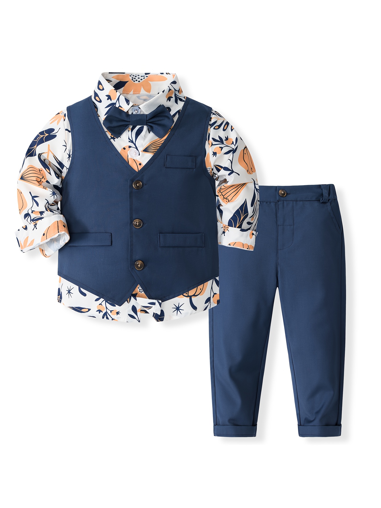 Celebration Attire, Boys' Formal Dress Set - V-Neck Suit with Bowtie, Long Sleev