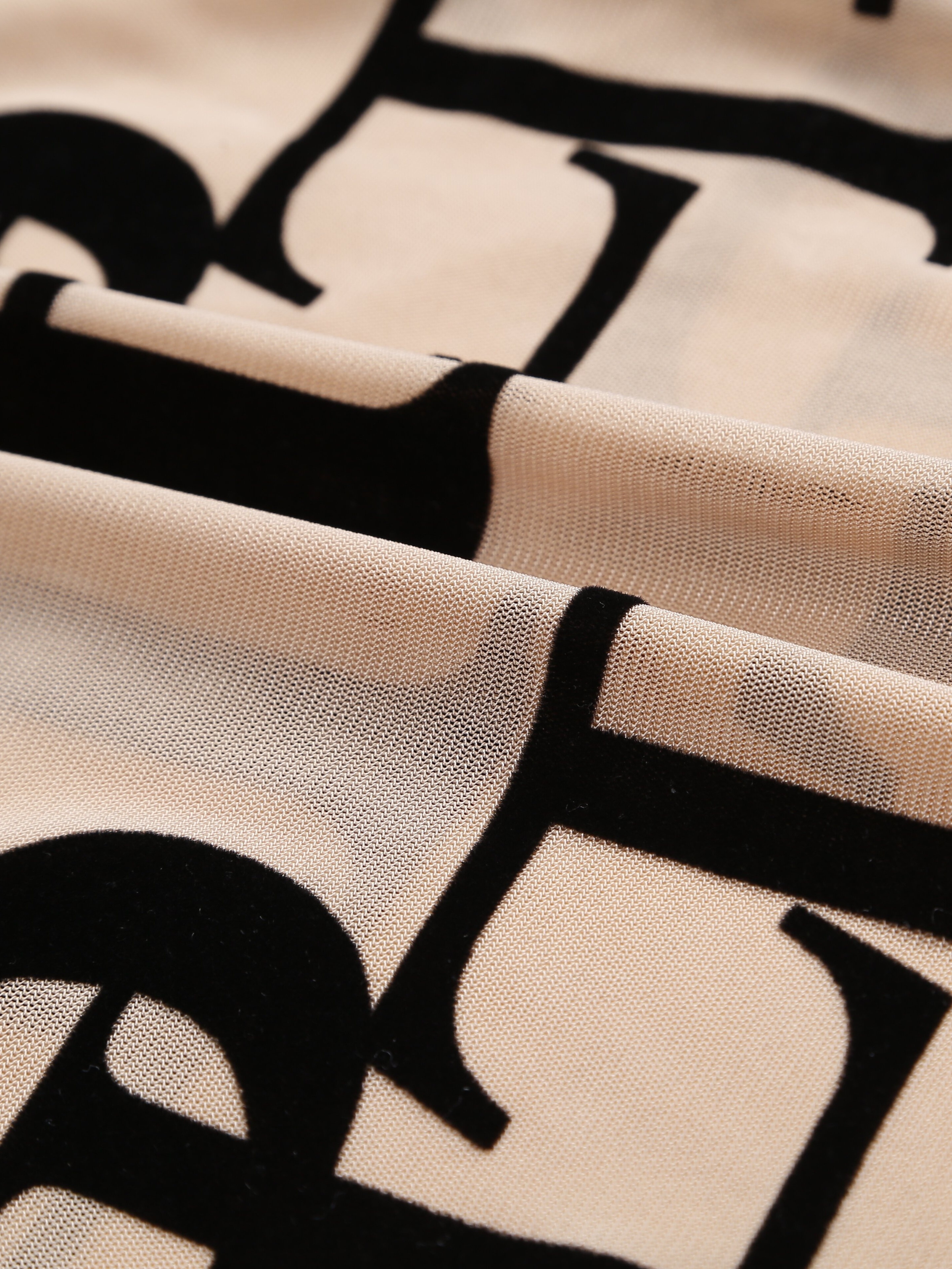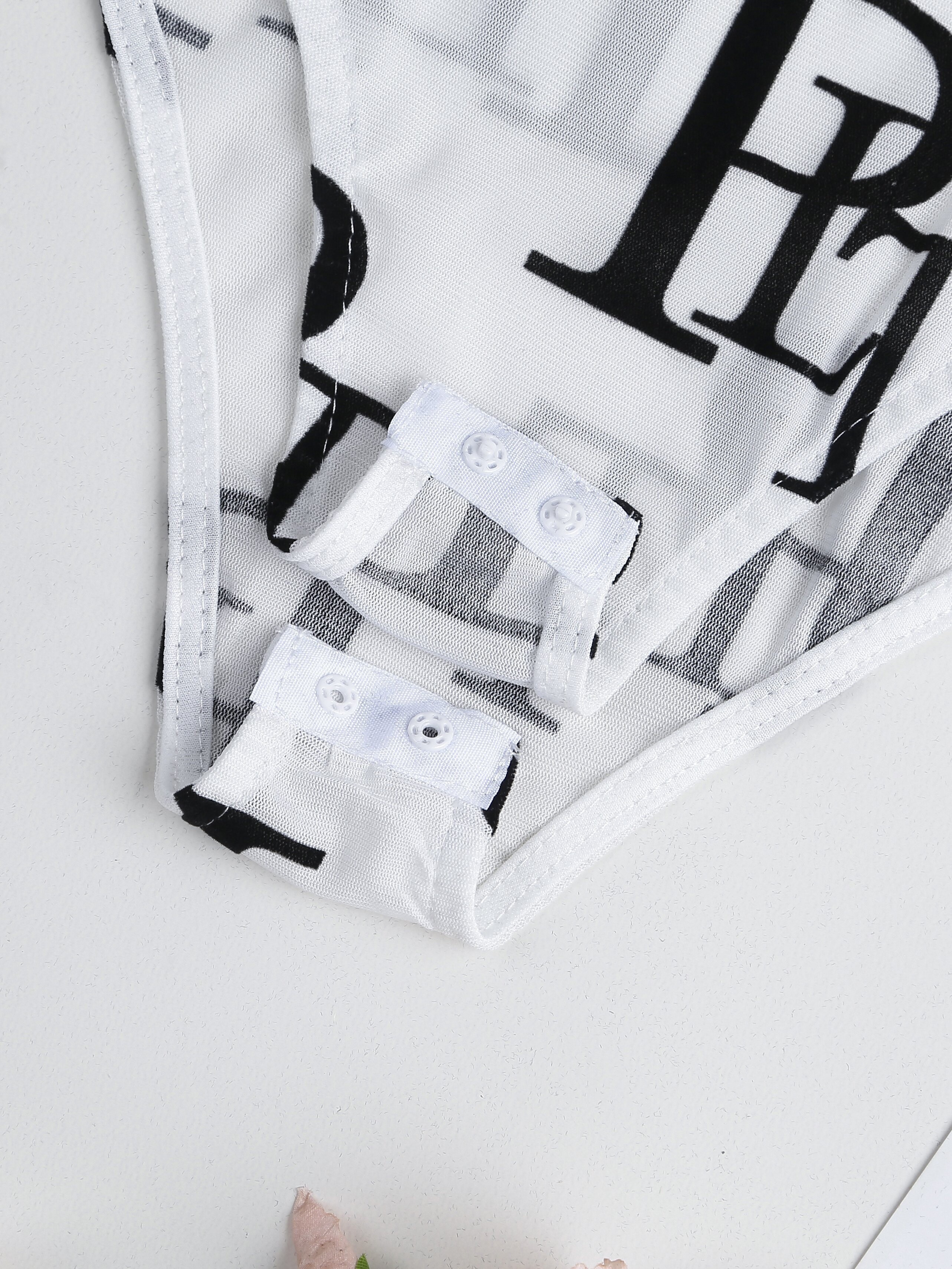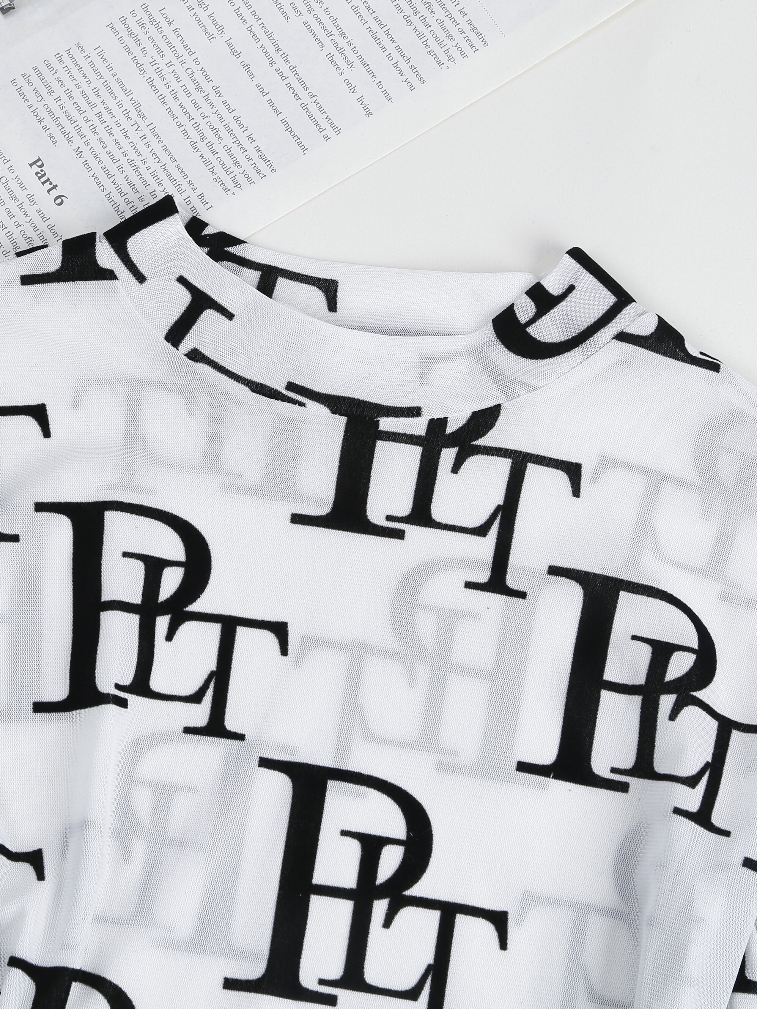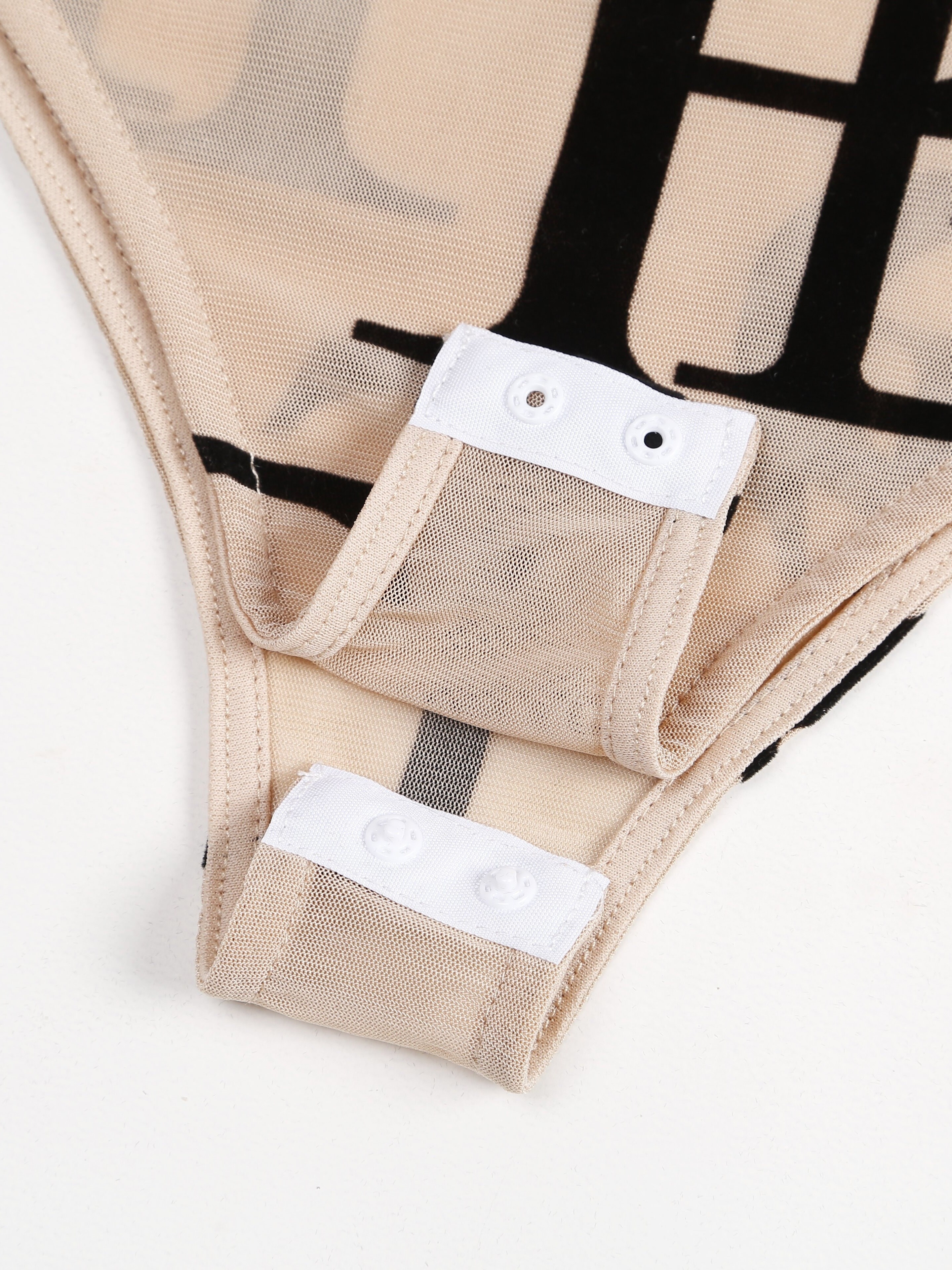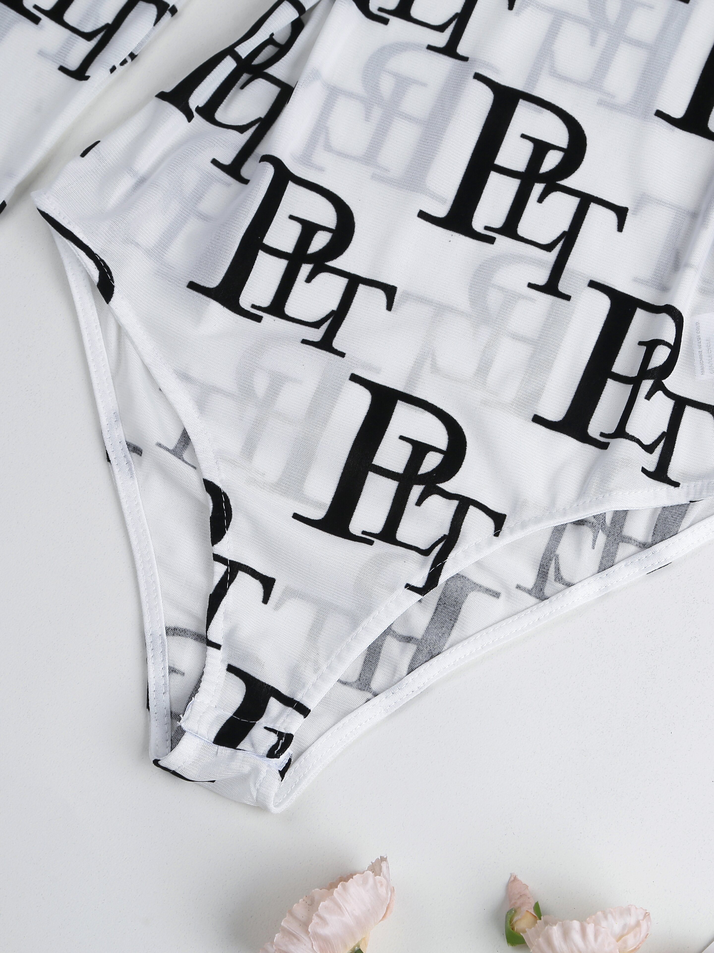Chic Letter Print Sheer Bodysuit - Flattering Mock Neck & Long Sleeves - Seducti