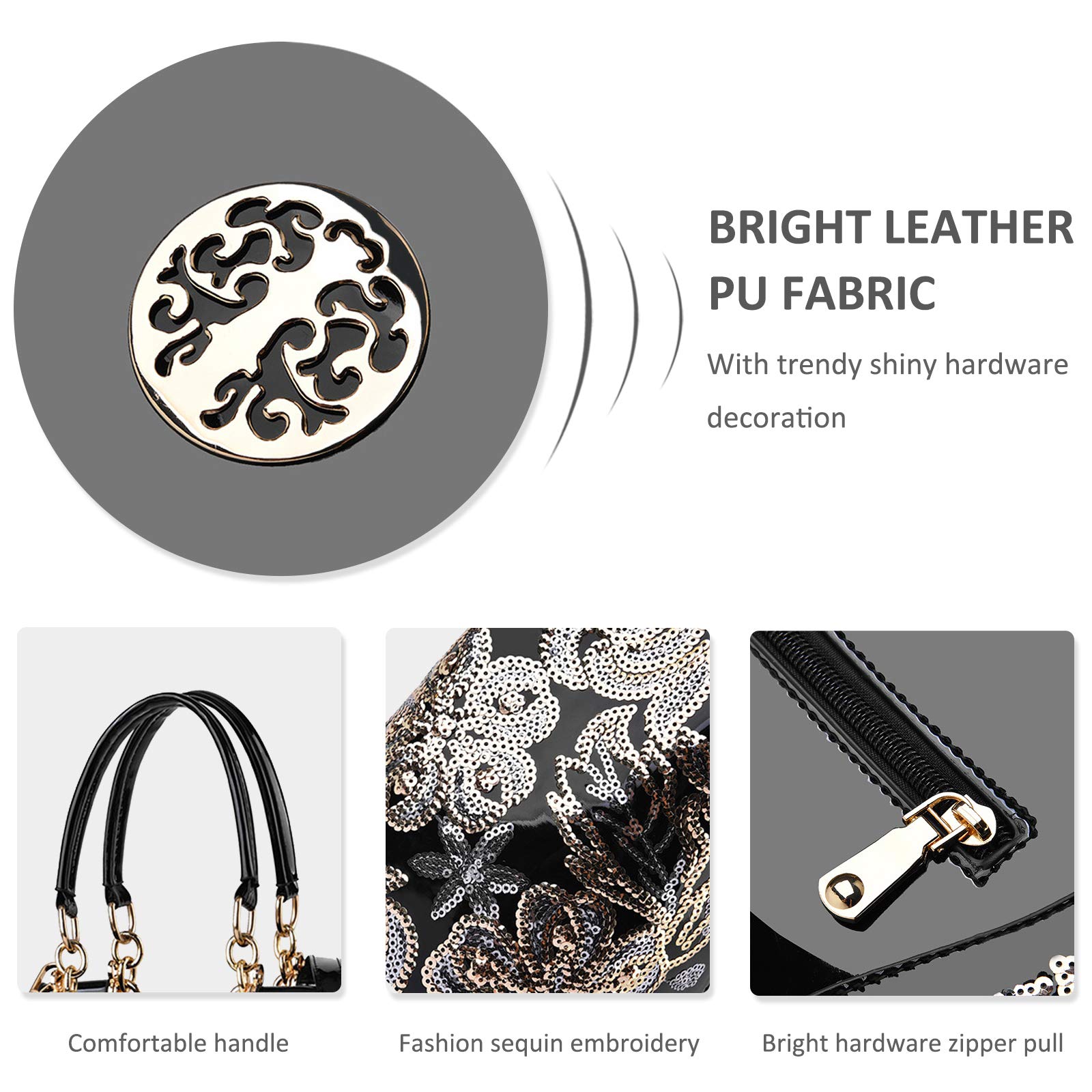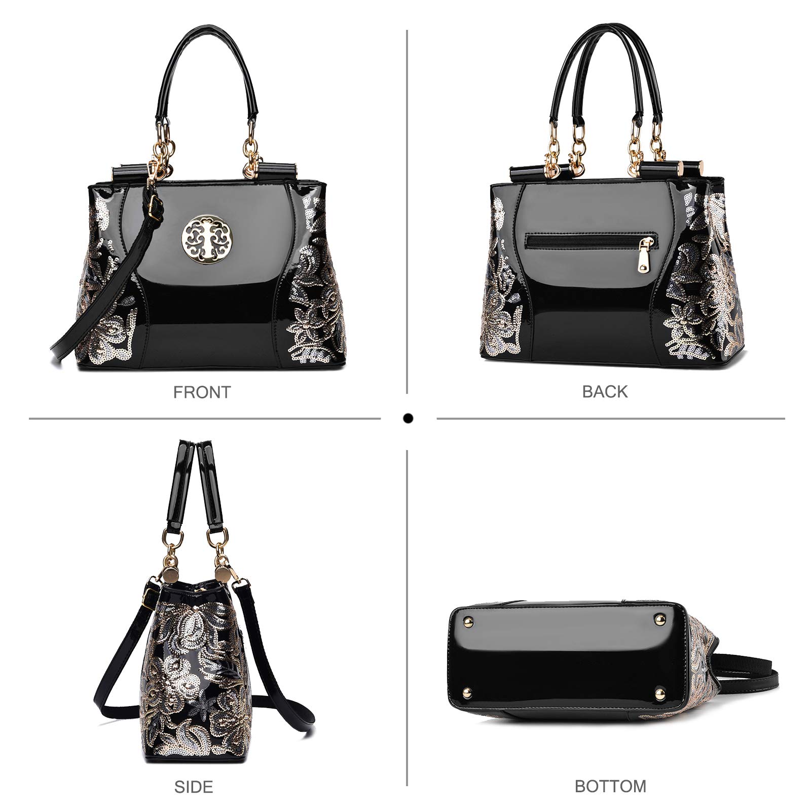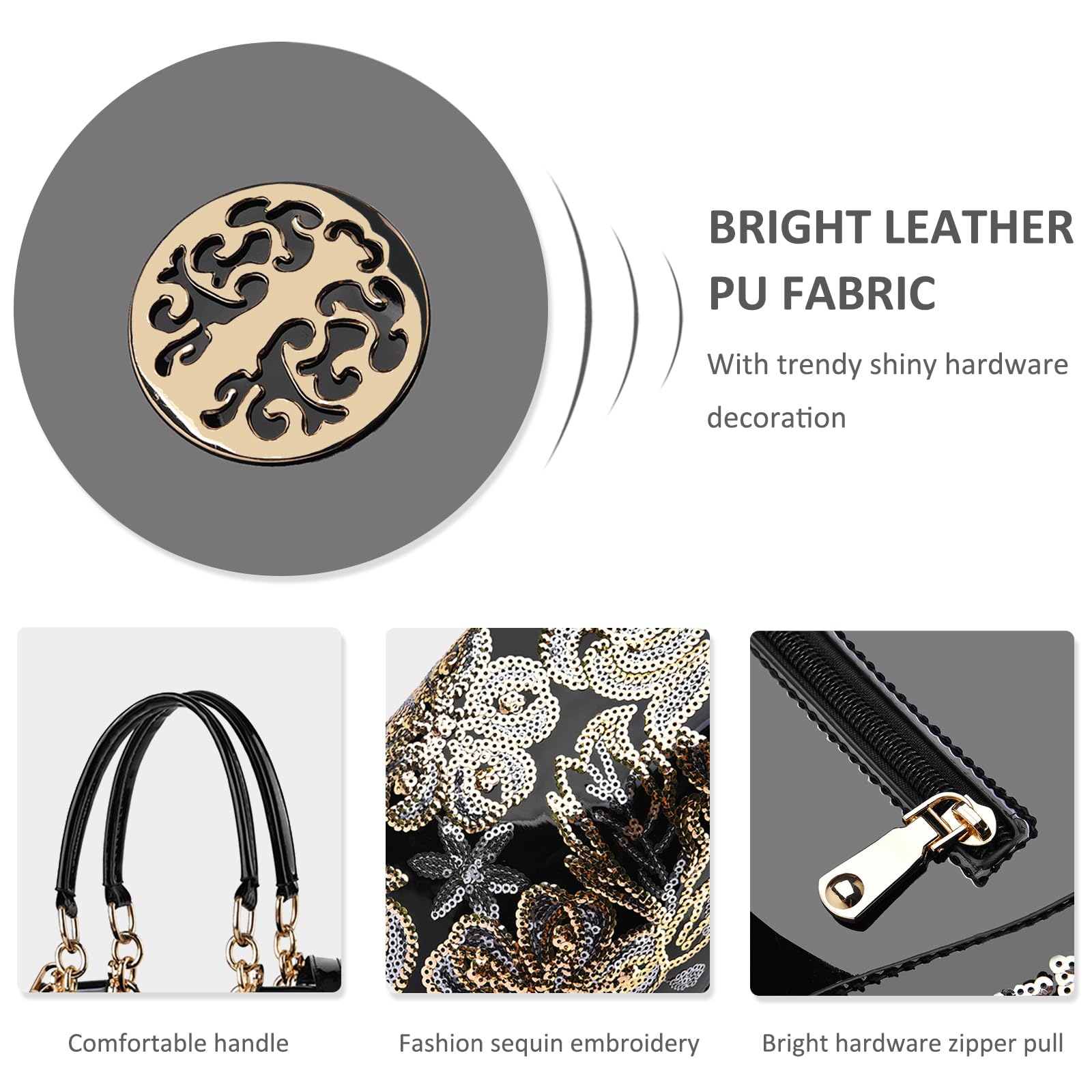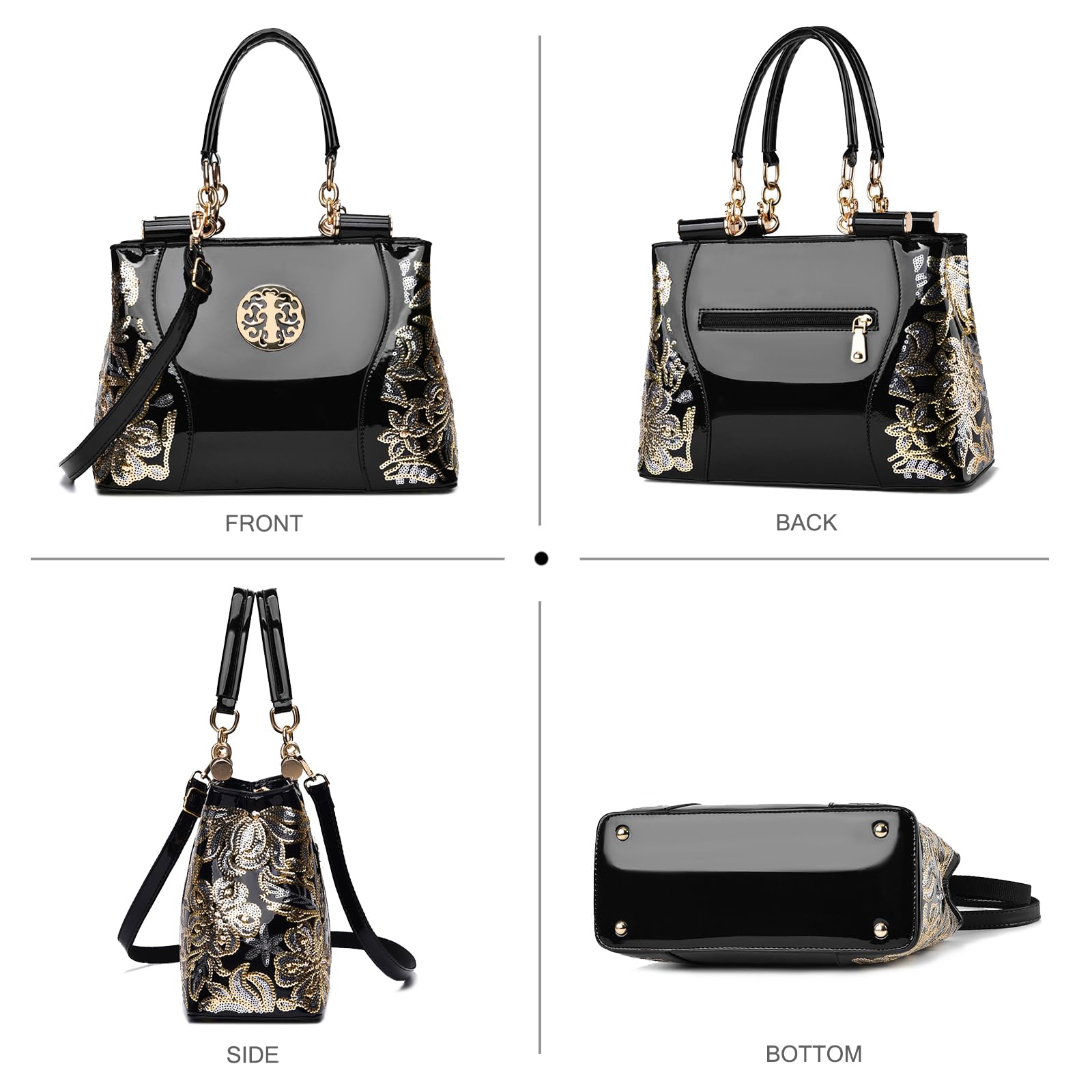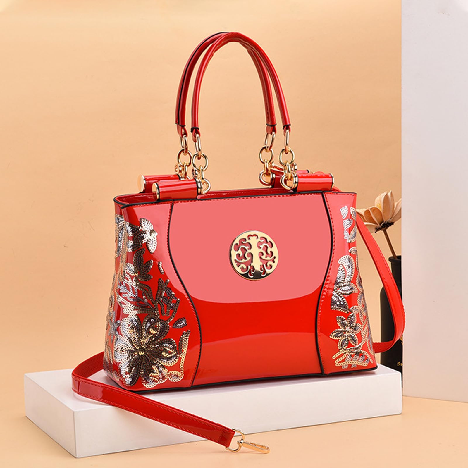 · Elegant and Fashionable Design: Highlight your intellectual beauty with this handbag's exquisite sequin embroidery and chic metal decorations. The thickened leather bottom adds stability and prevents fraying. The detachable and adjustable shoulder strap allows you to use it as a shoulder bag, handbag, or crossbody bag.