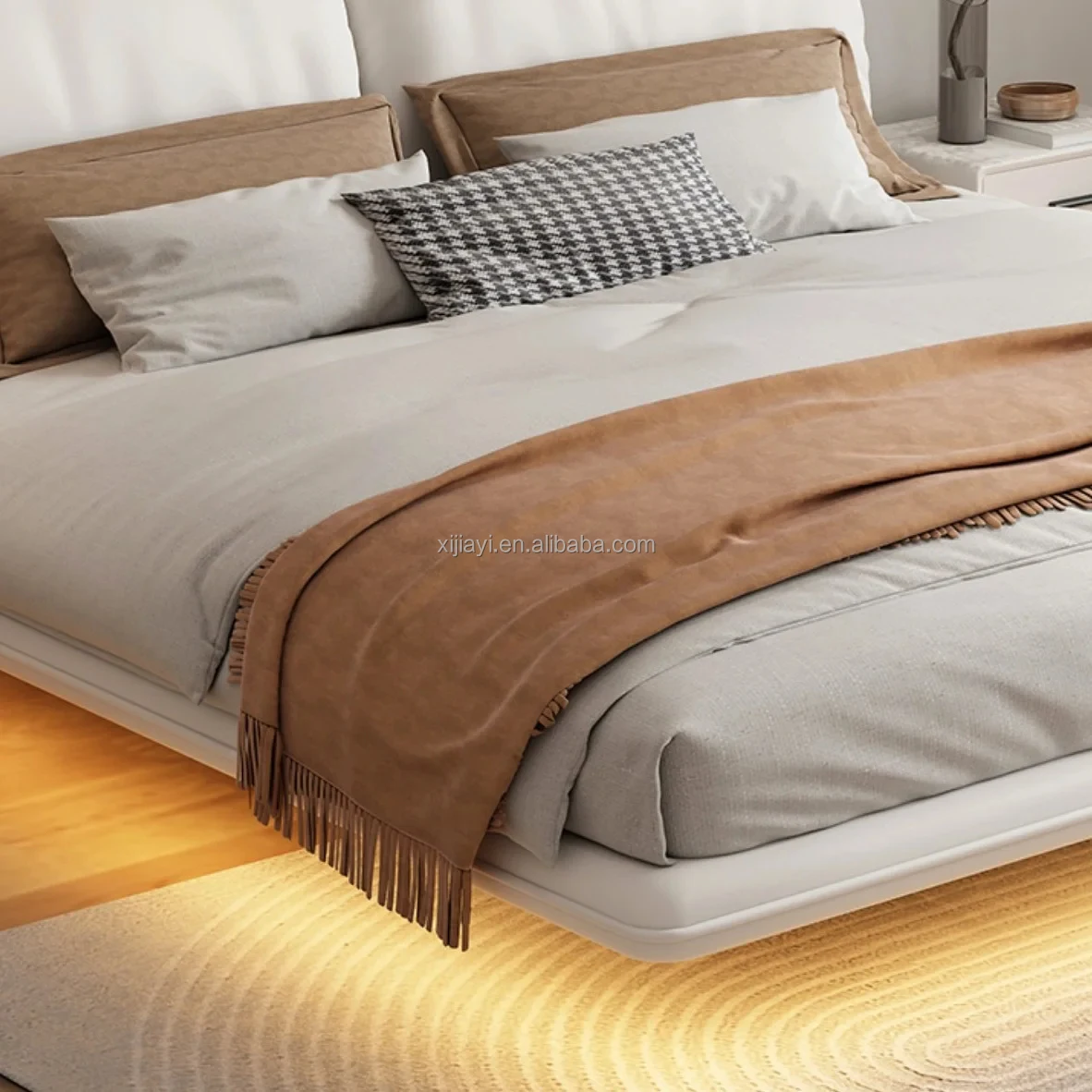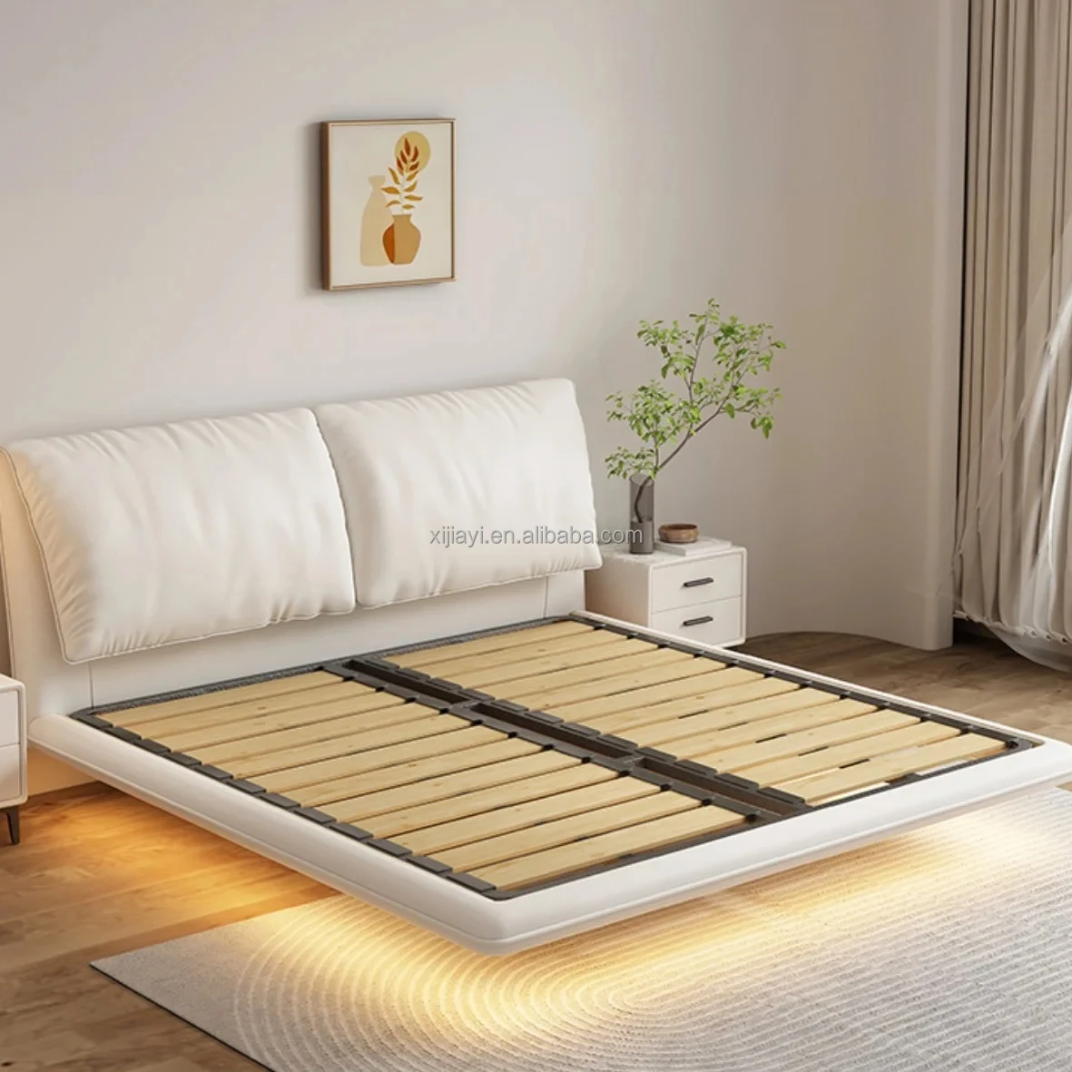 Floating Frame Metal Bed Wooden Tatami Double Bed Bedroom Furniture Light Luxury