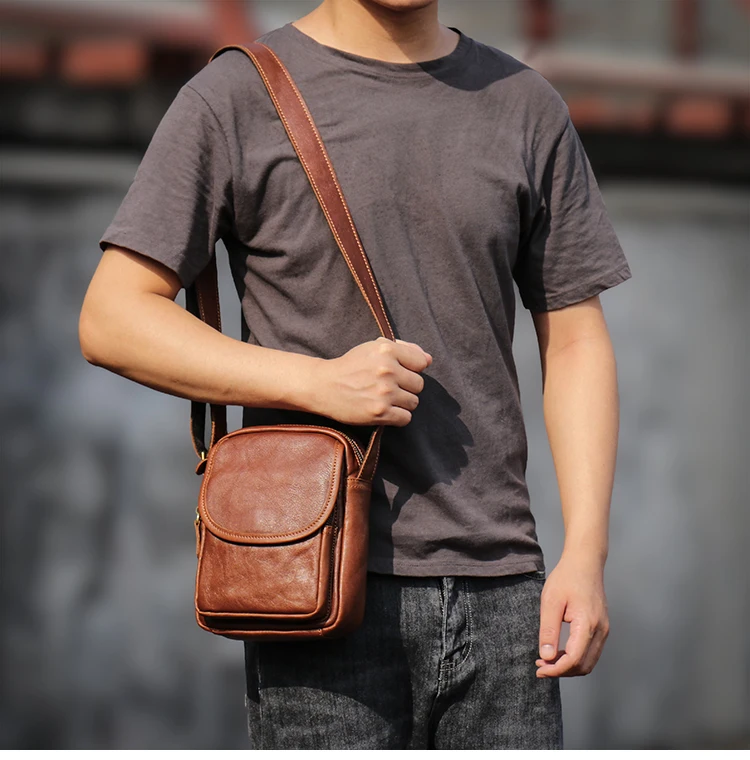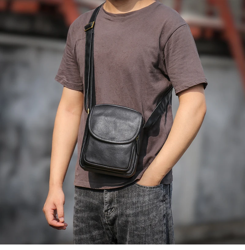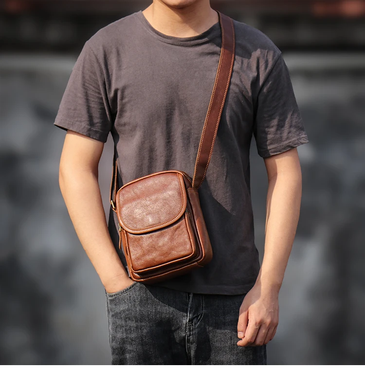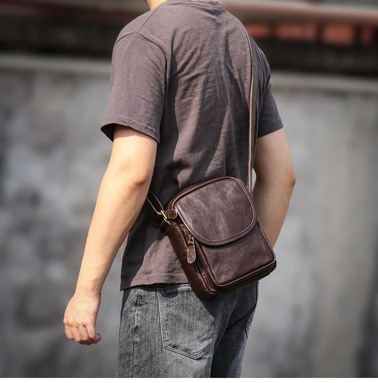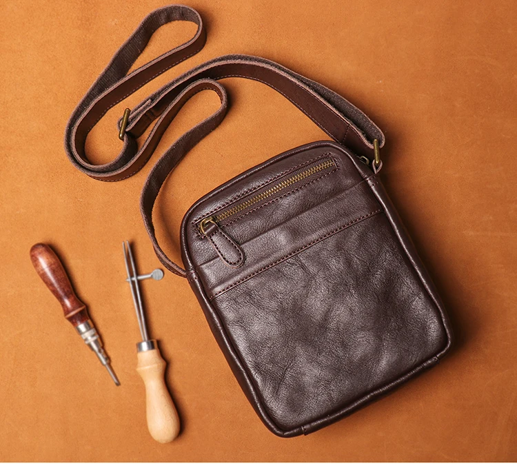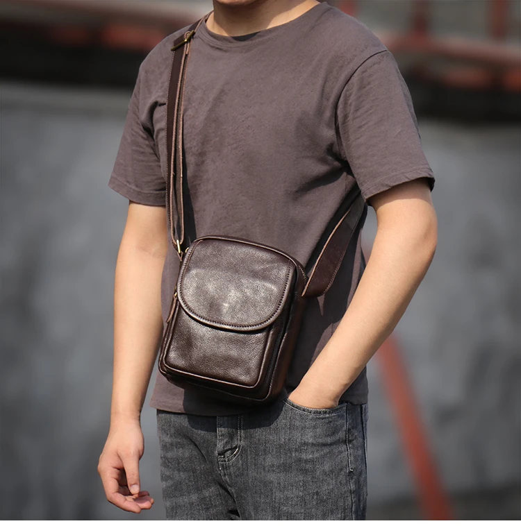 GURO High Quality Head Layer Cowhide Shoulder Bag Men's Genuine Leather Small Cr