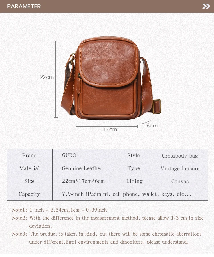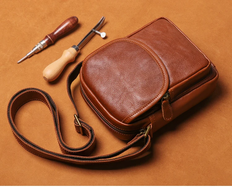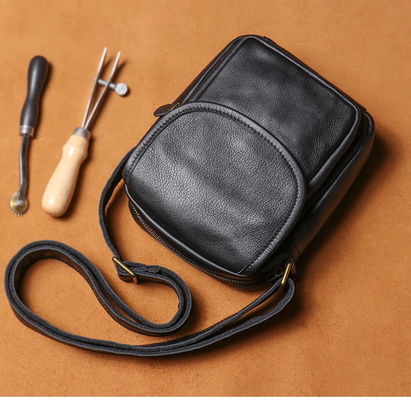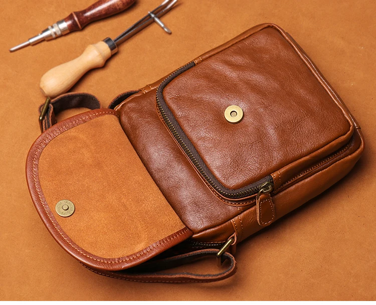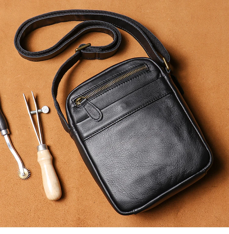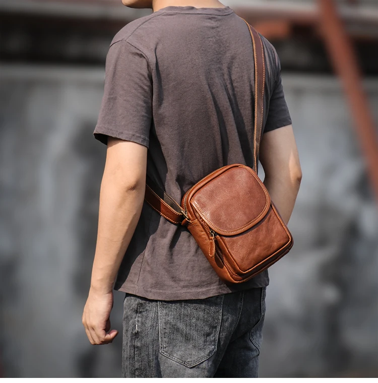 GURO High Quality Head Layer Cowhide Shoulder Bag Men's Genuine Leather Small Cr