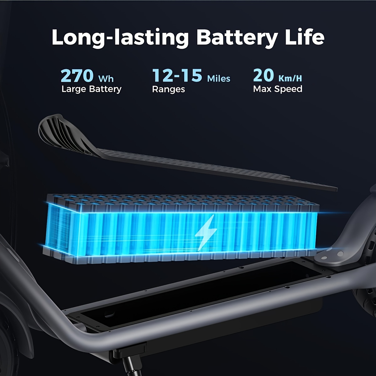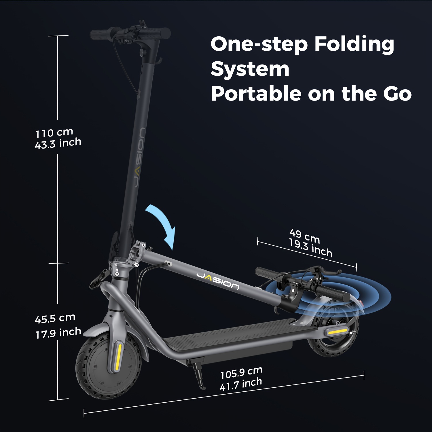 Jasion Adult Electric Scooter, 250W Rated Motor, Up to 20KM/H, 19-Mile Range, Fo