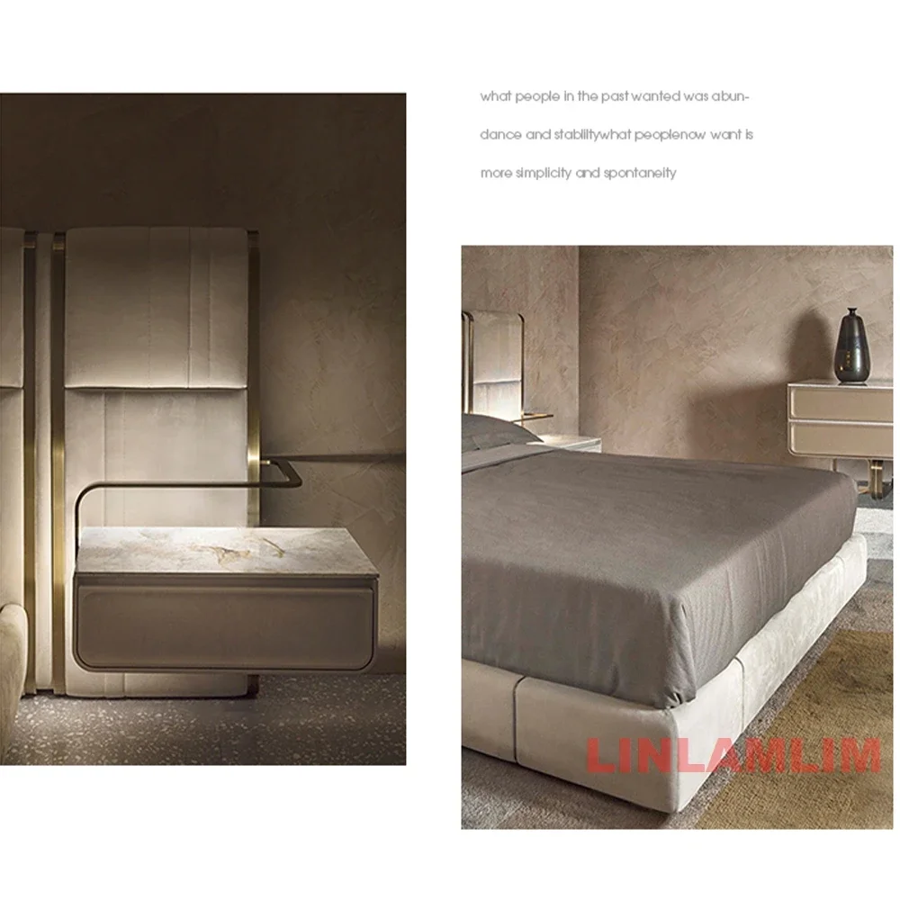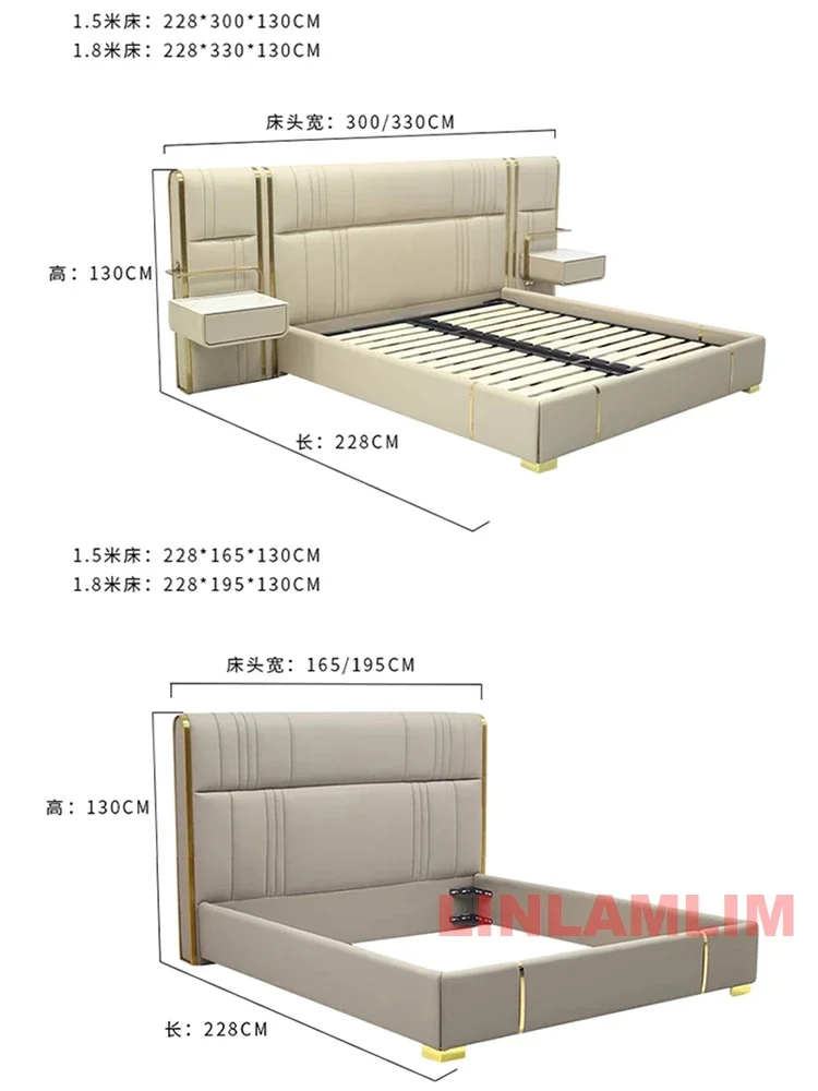 Linlamlim Luxury King / Queen Size Upholstered Bed Frame with Nightstands & Gold