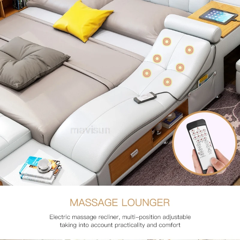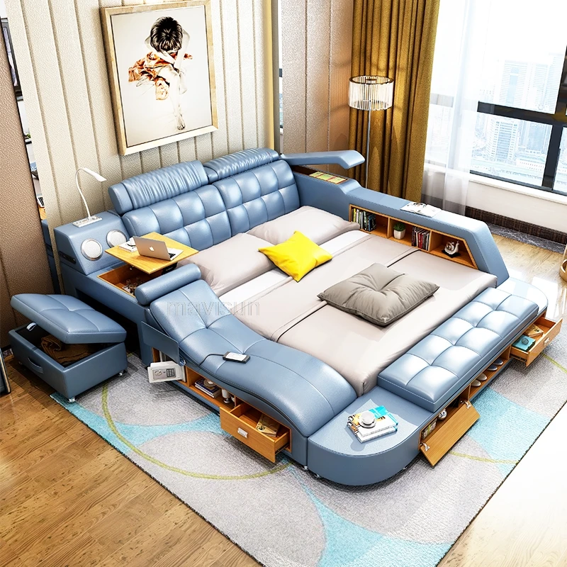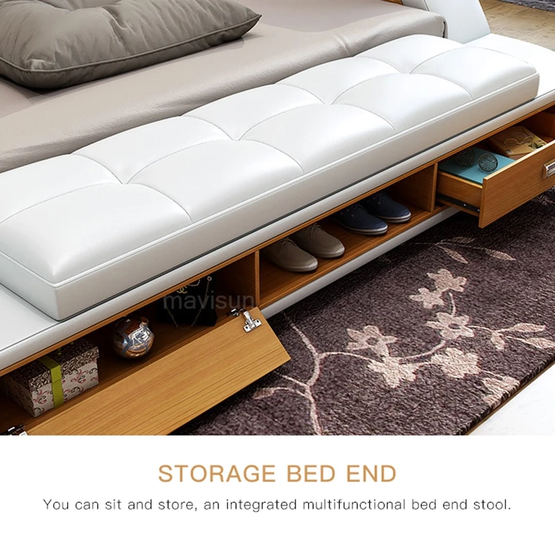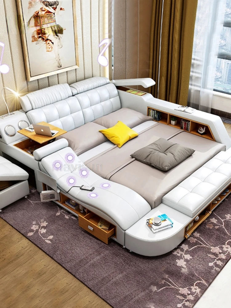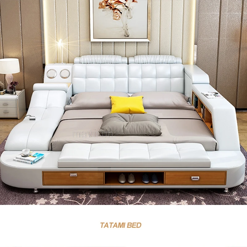 Multifunctional Master Bedroom Leather Queen Double Size Bed Modern Ultimate Sma