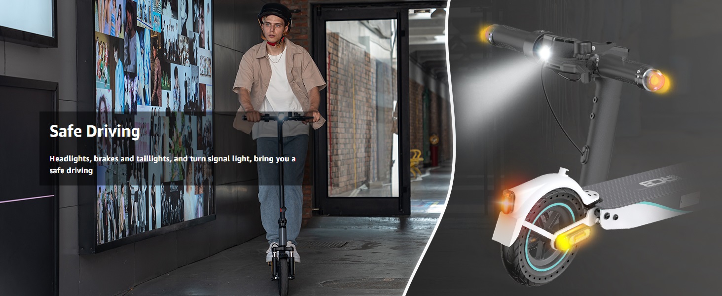 · [Excellent Riding Experience]: Dual suspension system, solid 10 inch tires, improved Shock absorption performance, bring you a comfortable driving experience. With warning tail light and ultra-bright front light that illuminates your path up to 15m during night rides, making your ride safer.