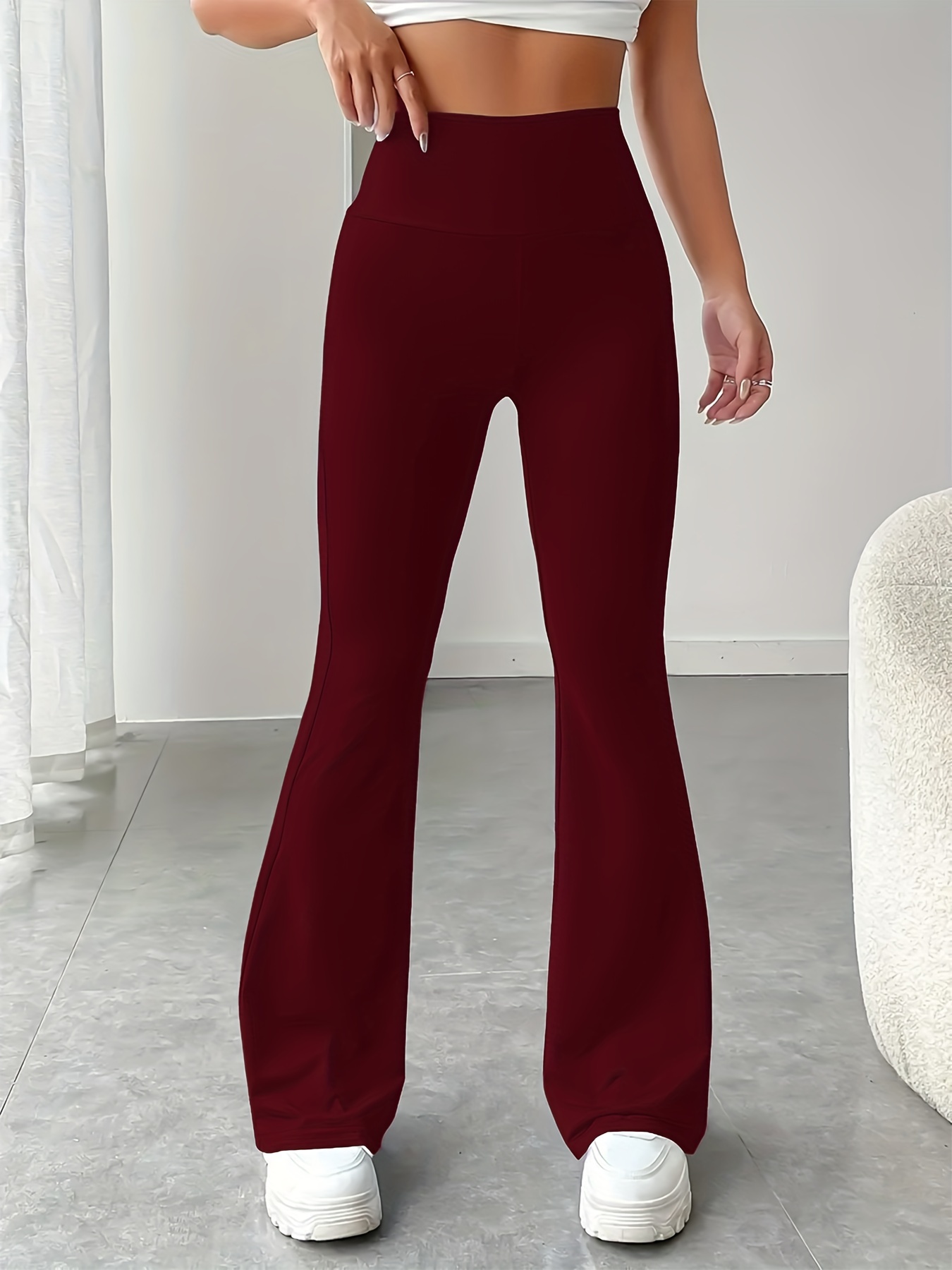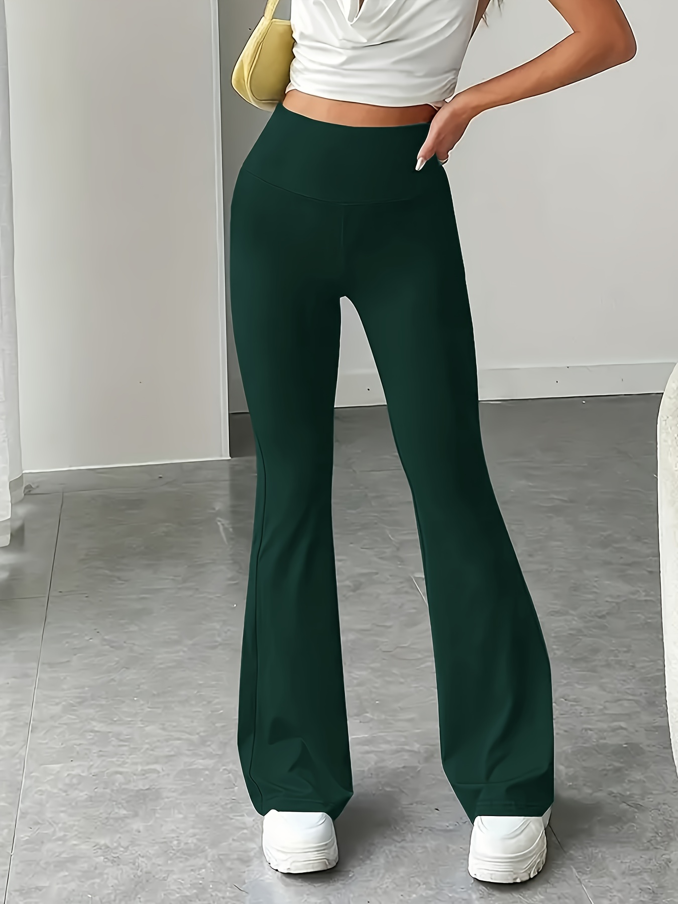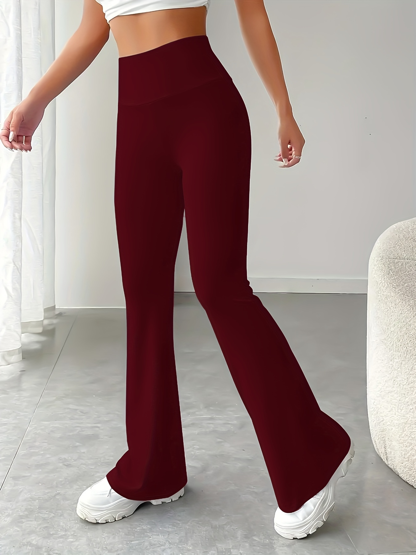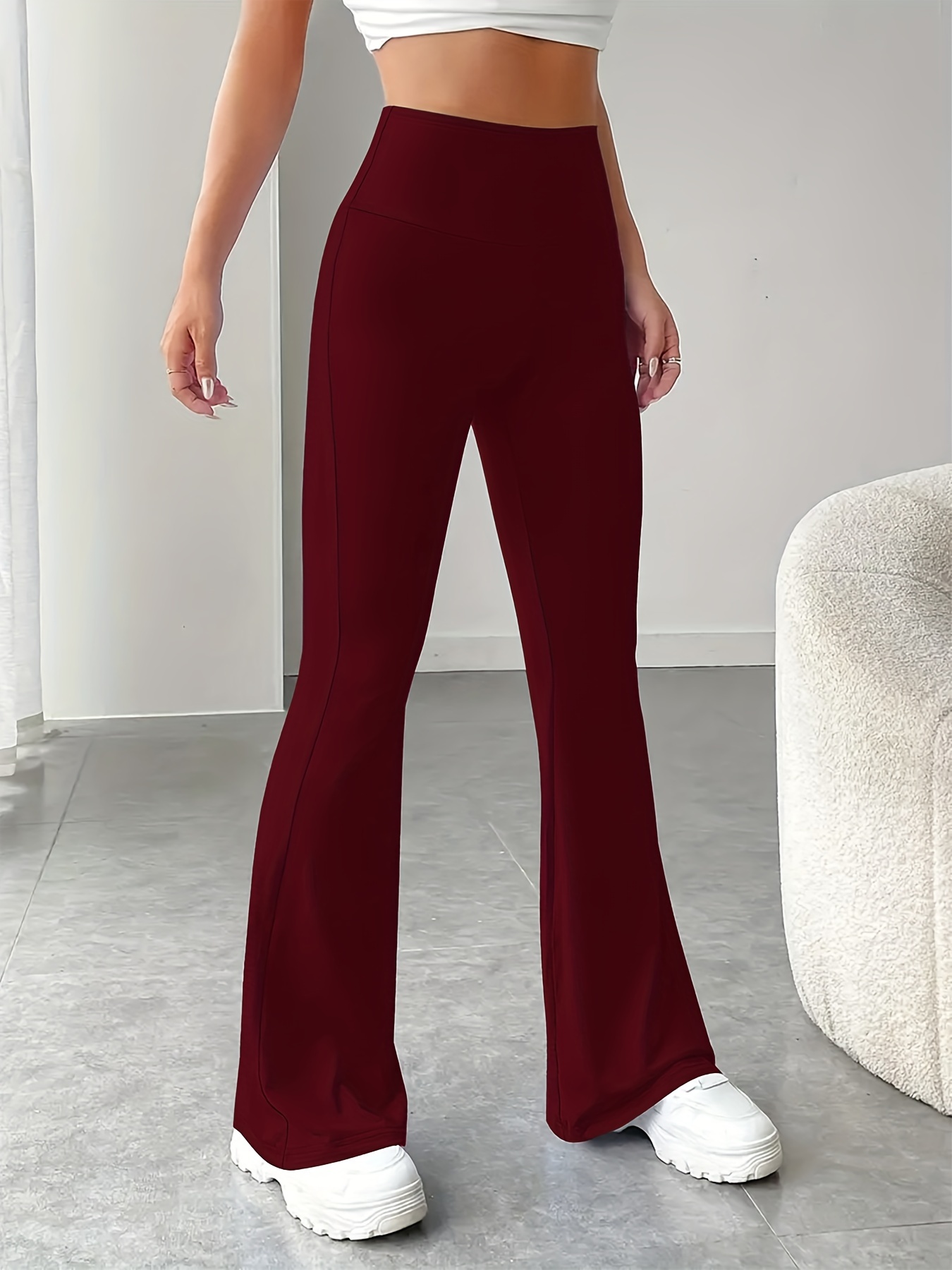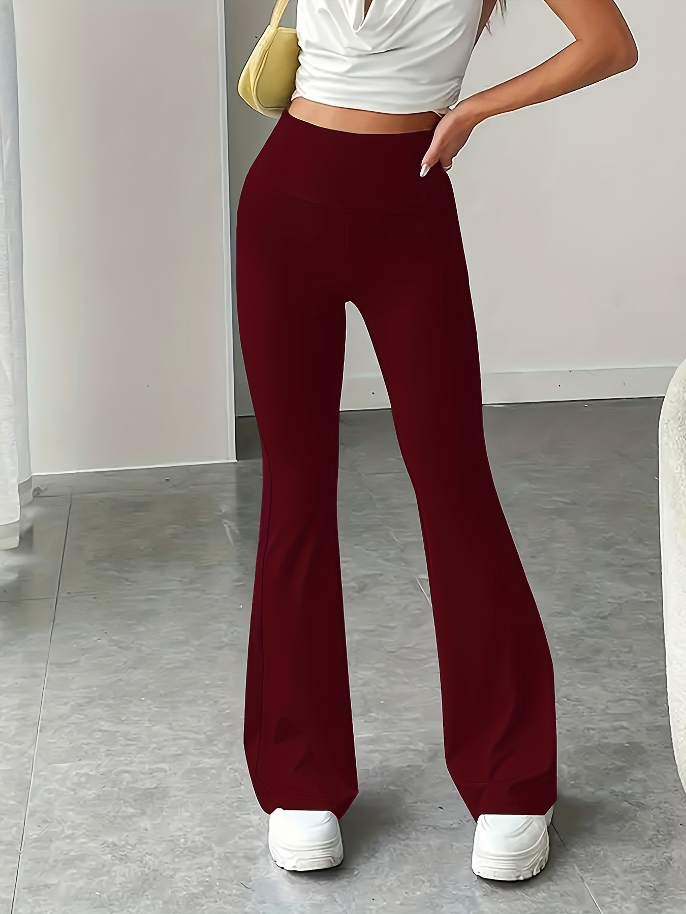 Solid Color Flare Leg Pants, Casual High Waist Forbidden Pants For Spring & Fall