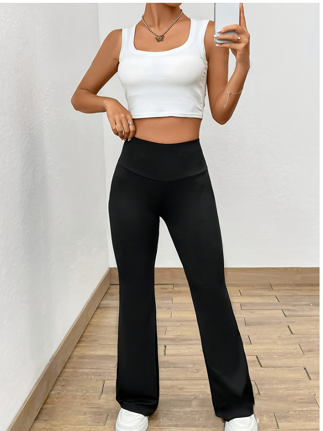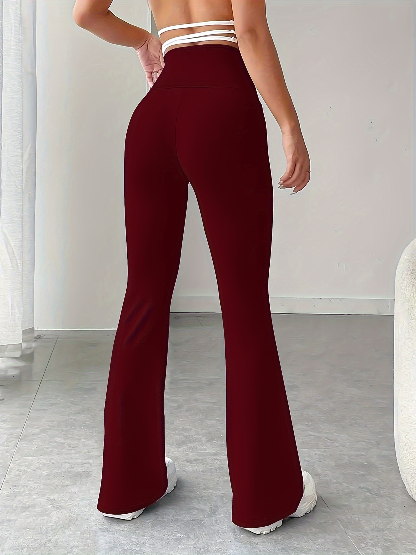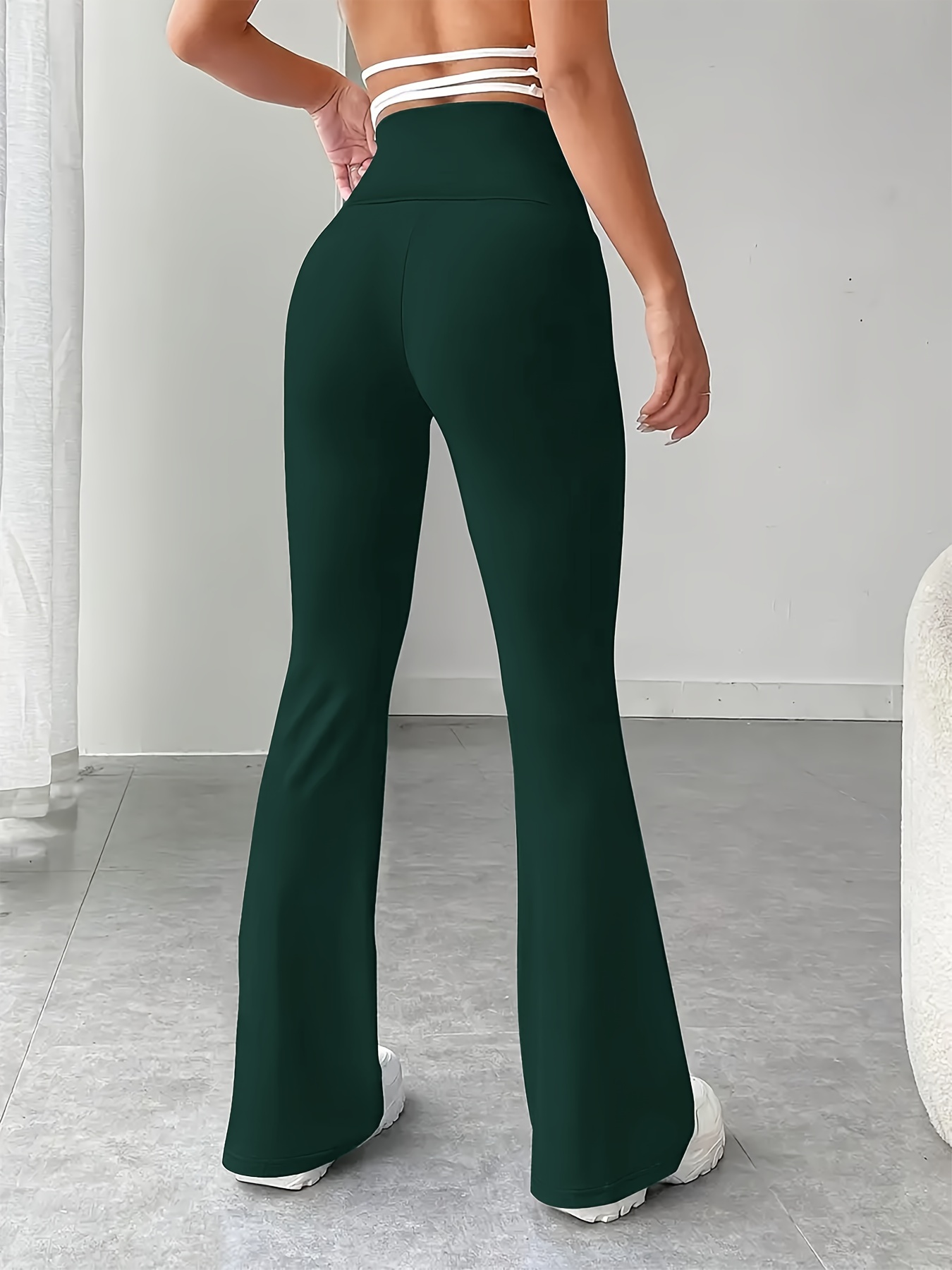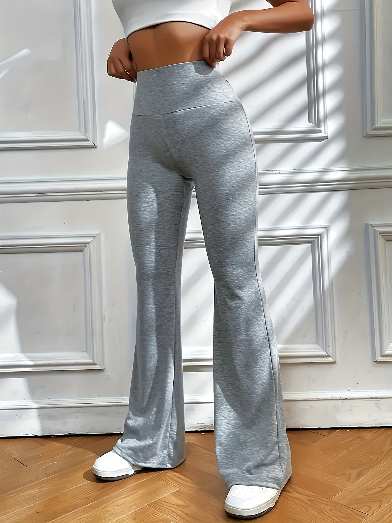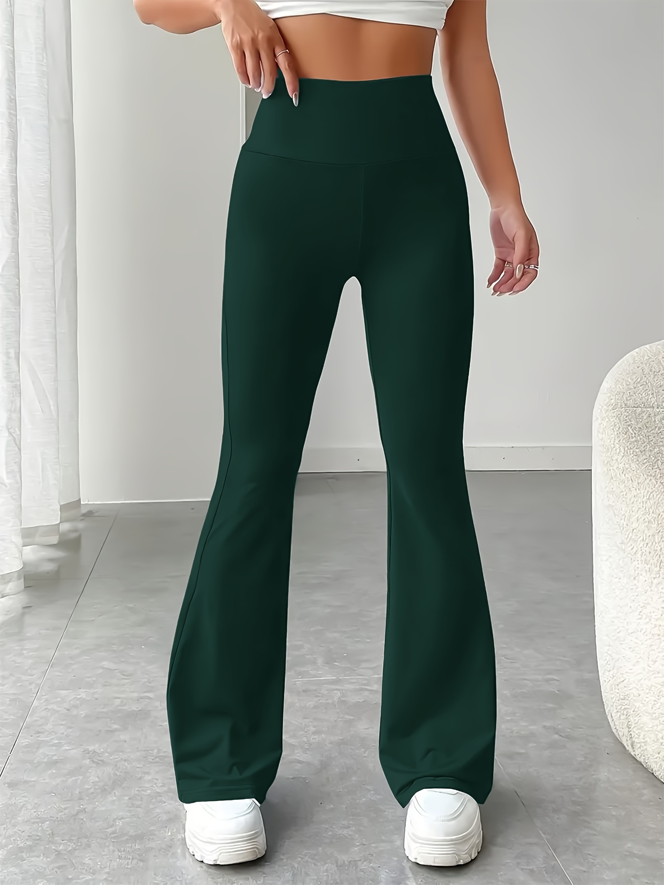 Solid Color Flare Leg Pants, Casual High Waist Forbidden Pants For Spring & Fall