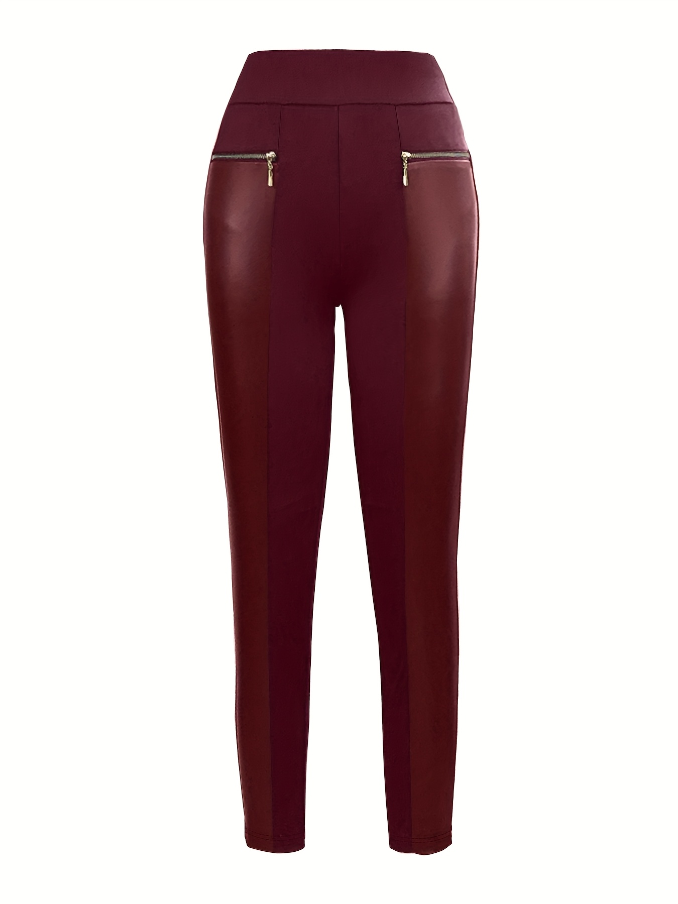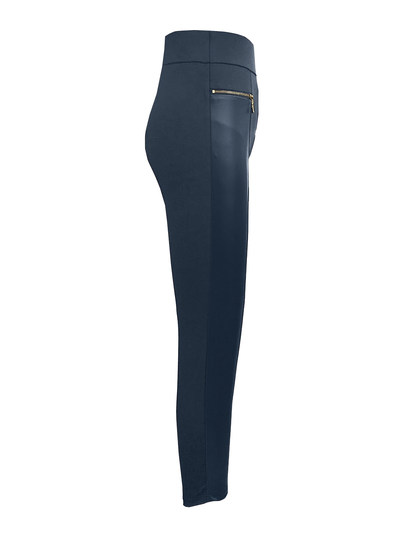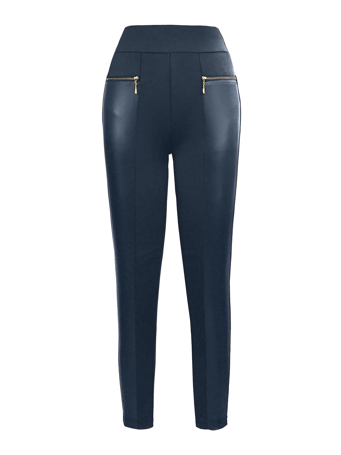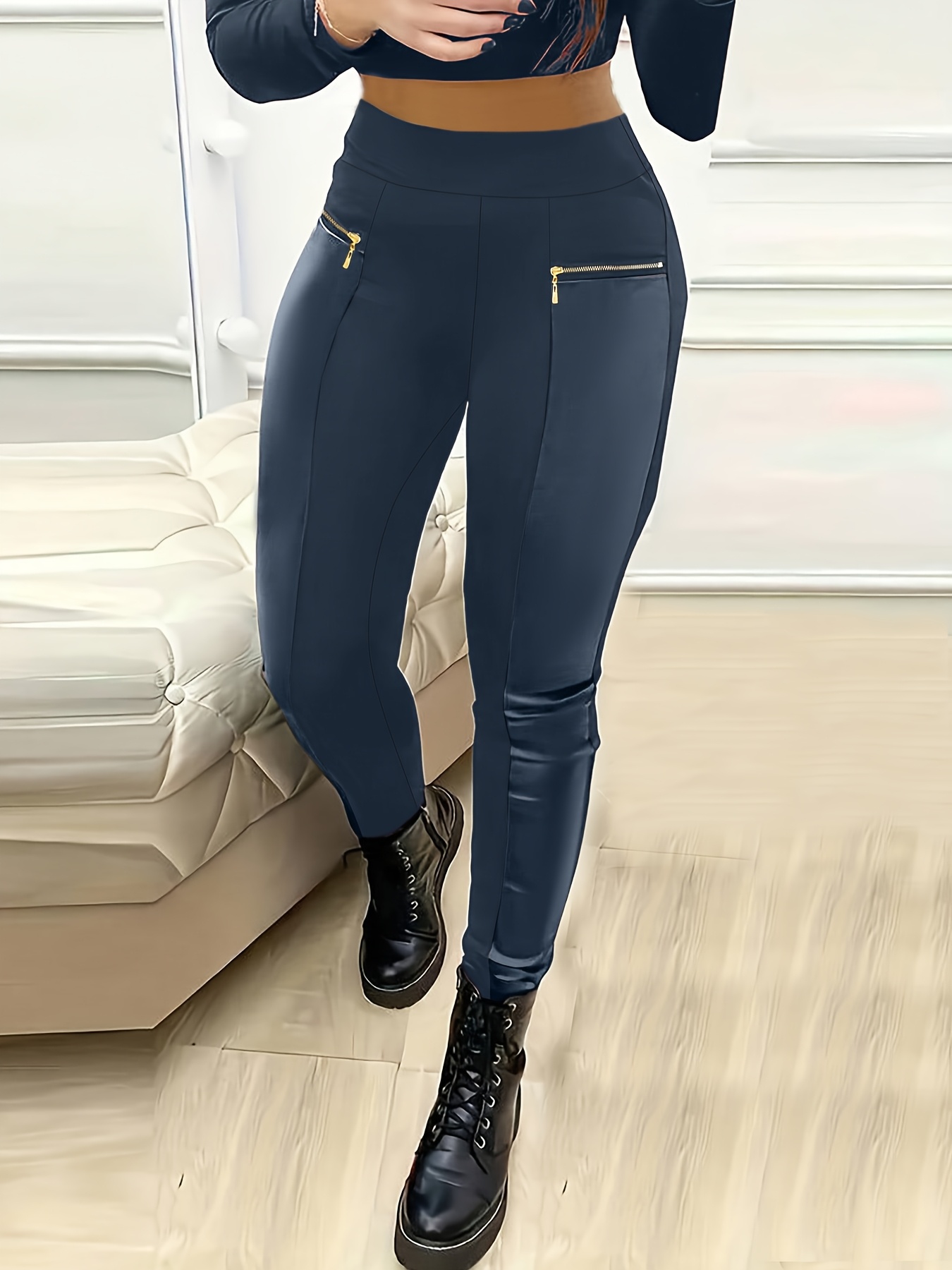 Women's Fashionable Casual Leggings - Stretchy Polyester and Elastane Blend, Zip