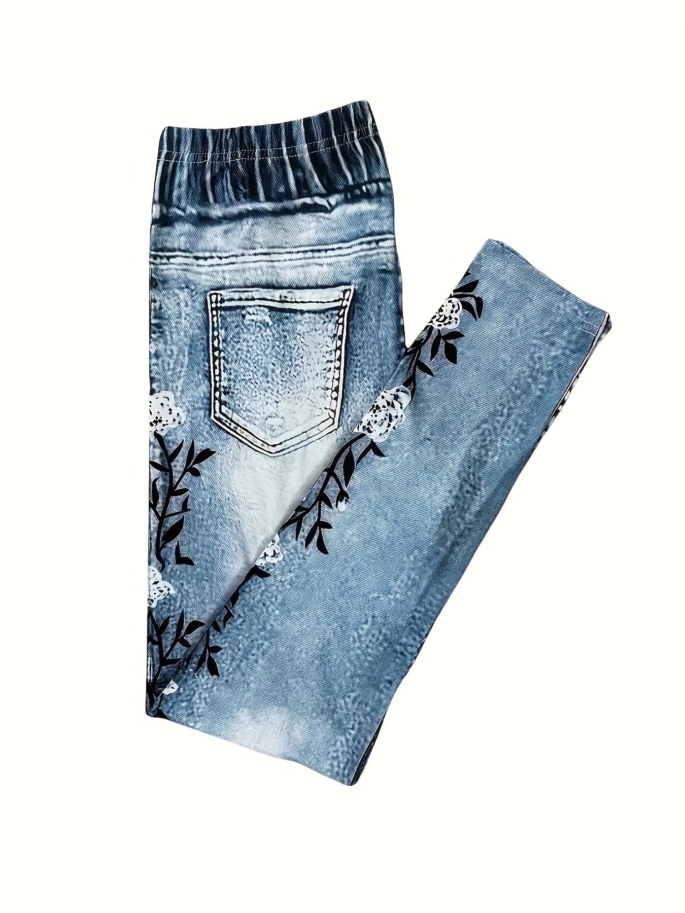 Women's Fashionable Cowboy Floral Print High Waist Skinny Jeans, Casual Stretch