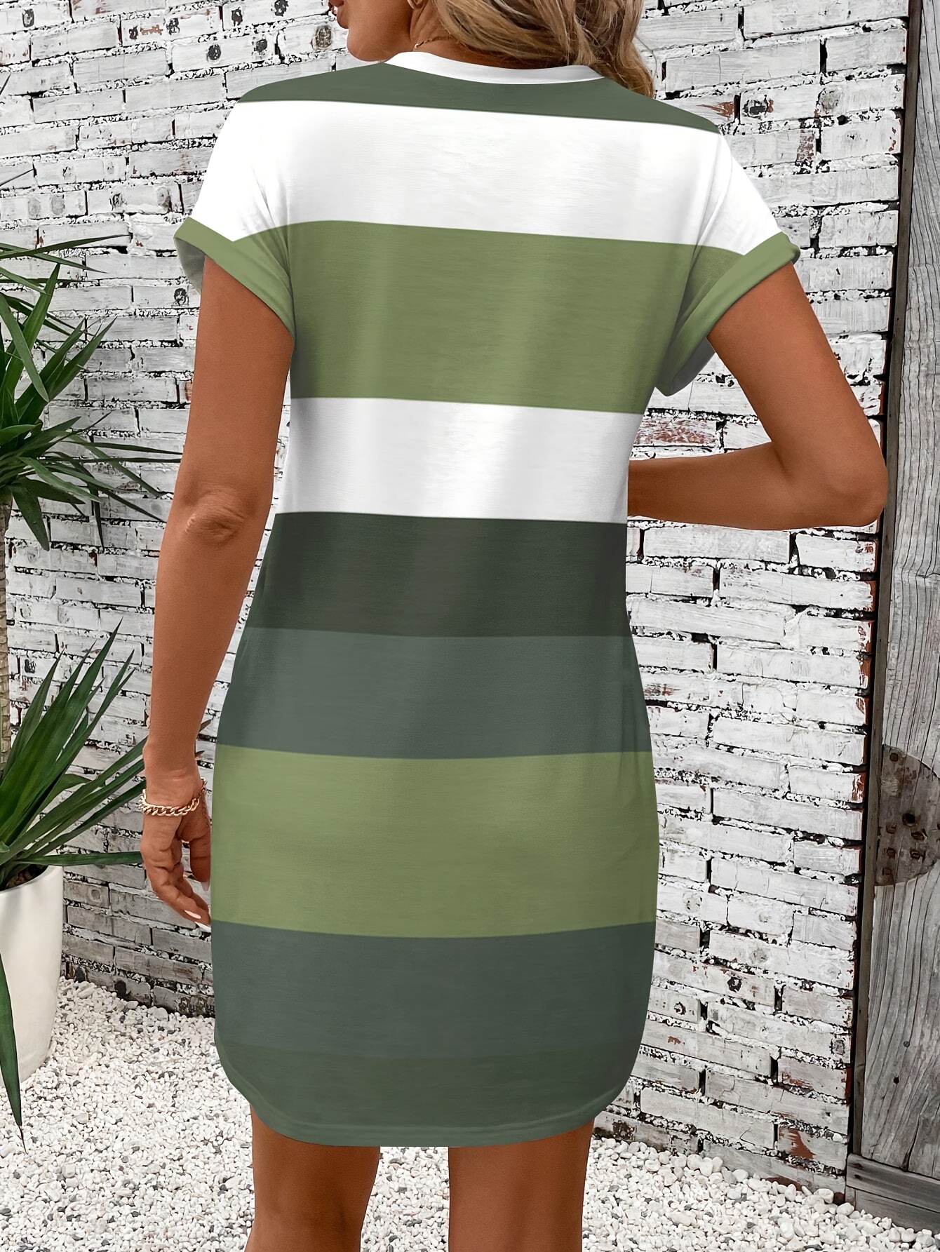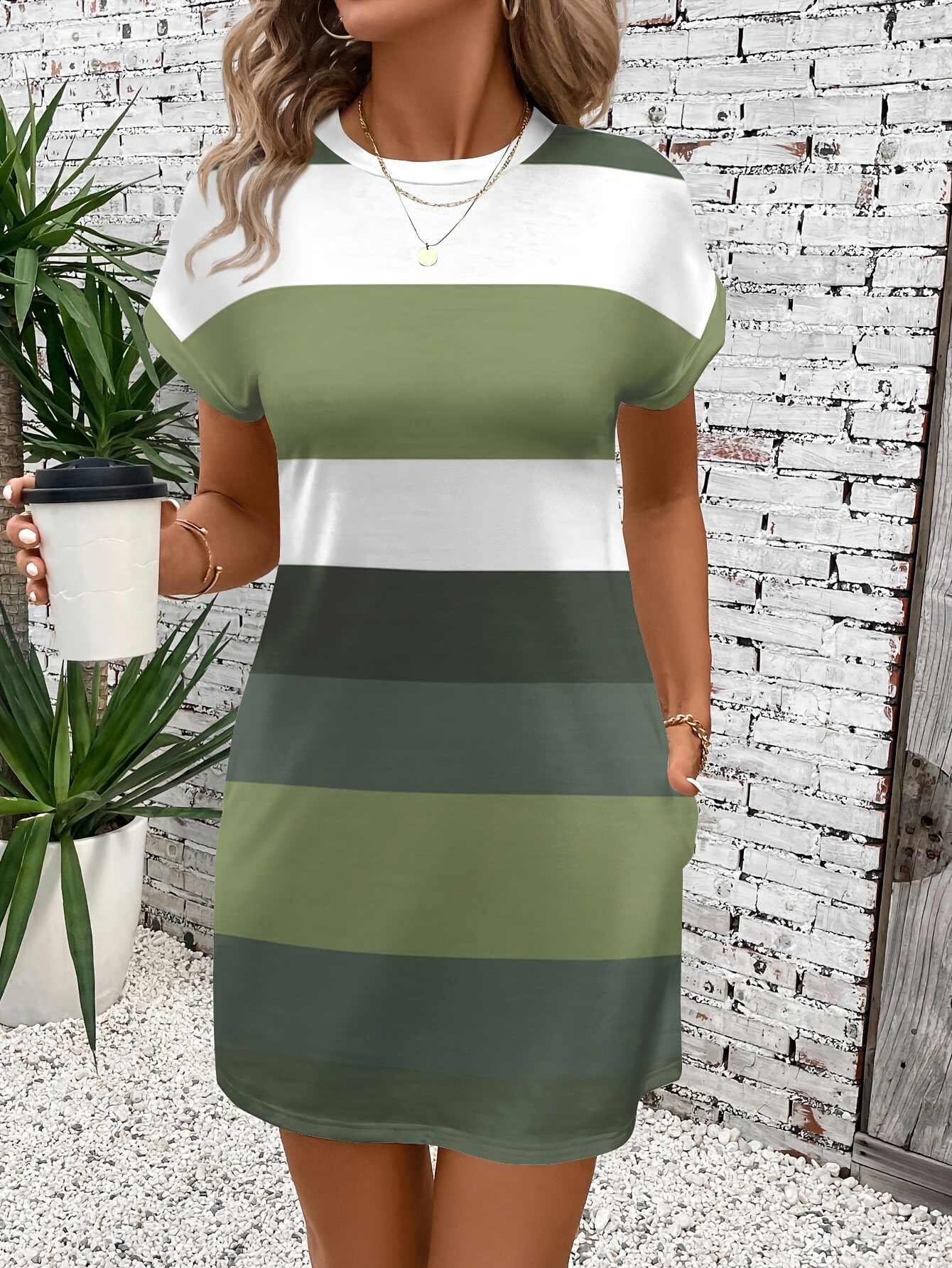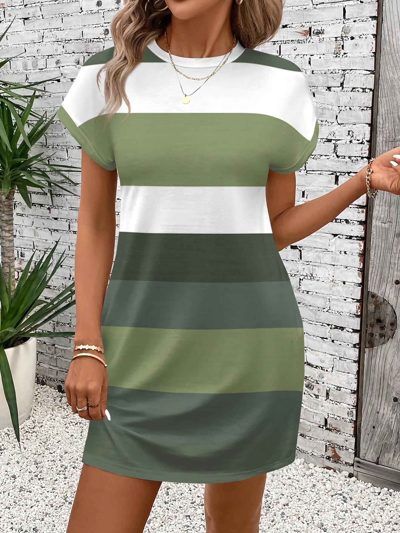 Women'S Summer Striped Tunic Dress, Polyester 95% Elastane 5%, Crew Neck Knit Fa
